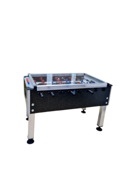Camlı free dış mekan langırt masası ürünümüz gövde olarak 25 mm kalınlığında kontrplak malzemededen imal edilmiştir. Gövdesi laminant kaplamalıdır. Jetonsuz langırt masası türüdür. Masamızın kolları 18 mm çapında 2 mm et kalınlığında çelik çekme krom kaplamalı borudur. Bu borunun üzerine kaliteli plastikten oyuncu bebekleri plastik enjeksiyon yöntemiyle basılmaktadır. Masa kollarımız teleskopik koldur. Ayaklar özel aliminyum profildir ve krikoludur (Masa yüksekliği ve dengesini ayarlamak amacıyla). Masamızın üzeri 4 mm kalınlığında temperli camla kapatılmıştır. Saha zemini de 4mm temperli camdır. Sayı boncuklu free langırt masasıdır. Jeton yada parayla çalışmayan makinadır. Makina ile birlikte 8 adet langırt topu verilmektedir.