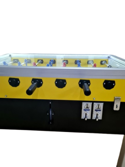 Full kapalı devre langırt masası ürünümüz gövde olarak 25 mm kalınlığında kontrplak malzemeden imal edilmiştir. Masamızın kolları 18 mm çapında 2 mm et kalınlığında çelik çekme krom kaplamalı borudur. Bu borunun üzerine kaliteli plastikten oyuncu bebekleri plastik enjeksiyon yöntemiyle basılmaktadır. Masa kollarımız teleskopik koldur. Ürünümüzün üstü topun dışarı kontrolsüzce gitmesini önlemek amacıyla 4 mm kalınlığında tamperli cam kullanılarak kapatılmıştır. Masamızın saha zemininde de oyun kalitesini arttırmak amacıyla yine 4 mm kalınlığında tamperli cam kullanılmıştır. Ayaklar özel alüminyum profildir ve krikoludur (Masa yüksekliği ve dengesini ayarlamak amacıyla). Çift elektronik para mekanizmalı makinadır. Oyun sahası led aydınlatmalıdır. Otomatik langırt masası diğer ticari langırt masalarından farklı olarak; topun sahanın içinden çıktığı makinadır. Dijital skor göstergesi ve 4 büyük takımın marş tezahüratlı full langırt masamıza ayrı bir renk ve heyecan katmaktadır. Makine Boyutları: İç saha ölçüsü 70 cm * 110 cm , Dıştan dışa ölçü 77 cm * 135 cm , Yerden yükseklik 90 cm , Ağırlık 75 kgNo Reviews
